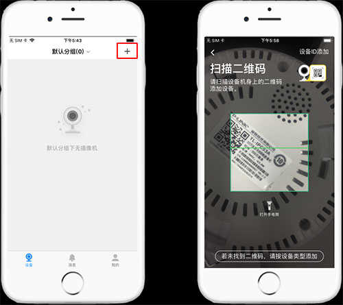 1、复位摄像头,使其指示灯变为红绿交替闪烁。登录TP-link物联APP,点击设备主界面右上角【+】,扫描摄像头背面的二维码;