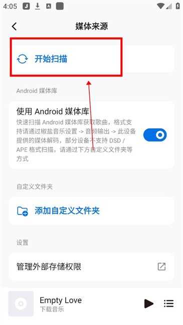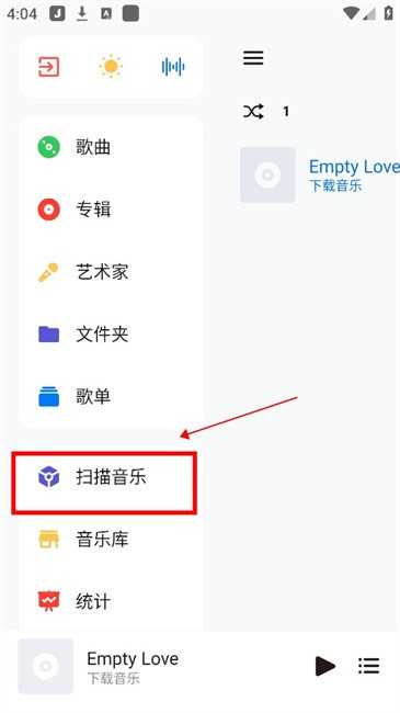2、在菜单中选择扫描音乐”并进入扫描页面。