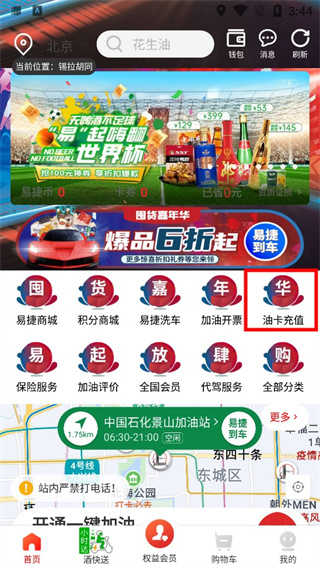 1、首先我们进入中国石化钱包(易捷加油)app当中,进入首页的油卡充值。