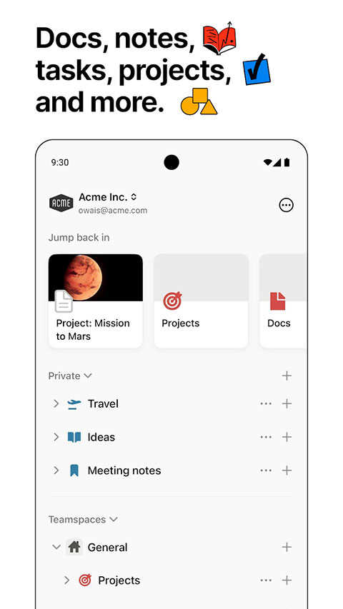 创建包含图像、待办事项和 20 多种内容类型的精美文档。
