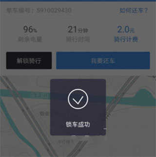 用车、还车轻松自由;使用无桩技术,关锁后自动完成计费。