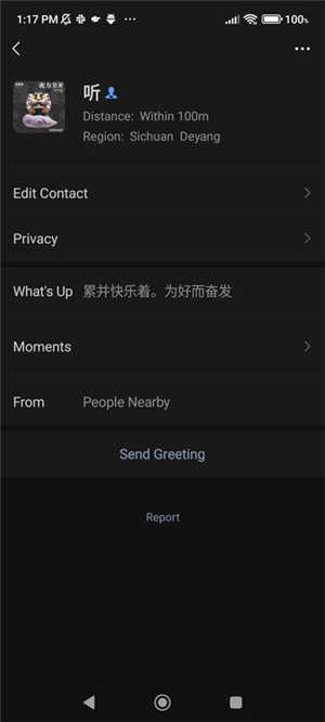 6、点击好友查看他的信息页,包括号、签名、朋友圈等