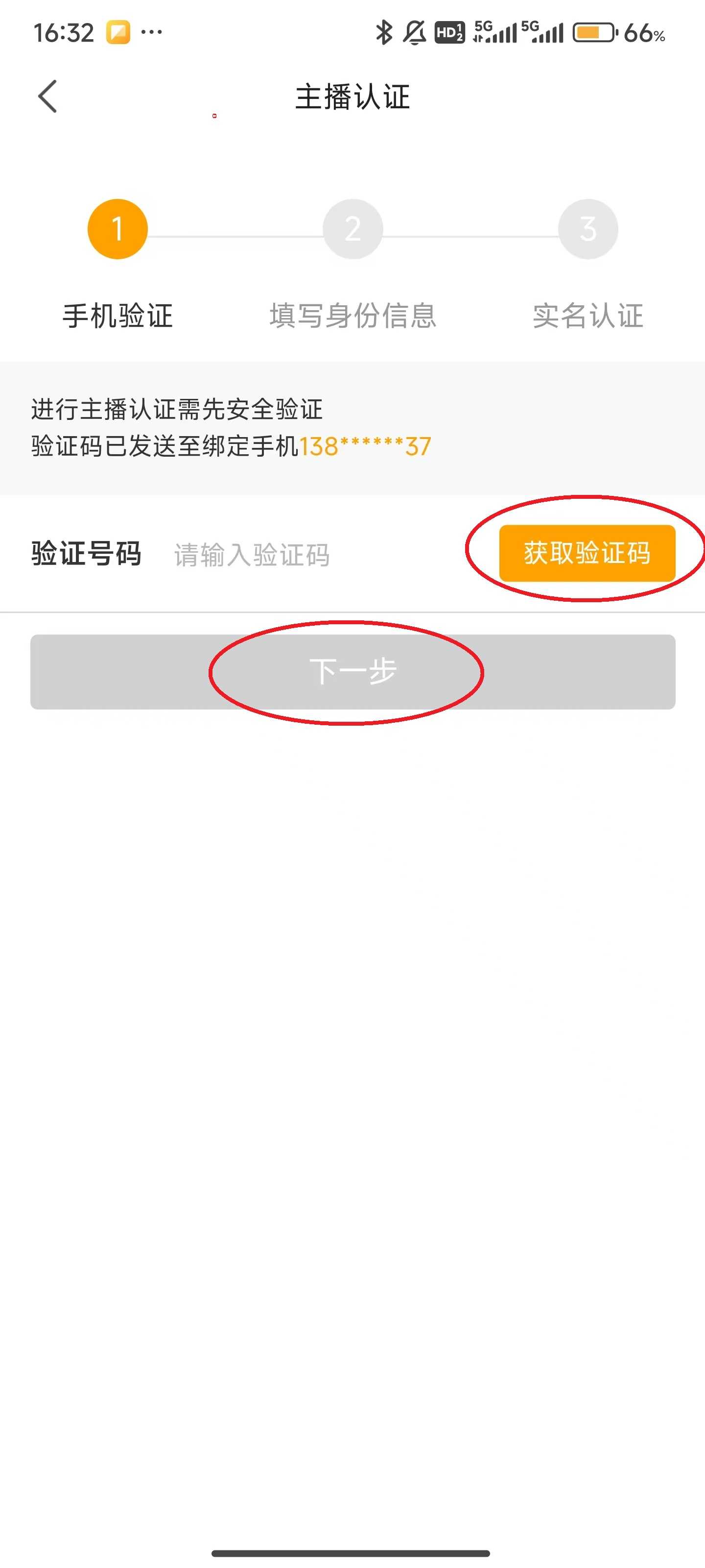 6、点击屏幕右侧的获取验证码”,输入验证码后,点击下一步”。