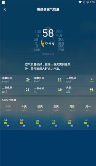 3、了解空气质量评价,点击即可掌握具体的污染物信息