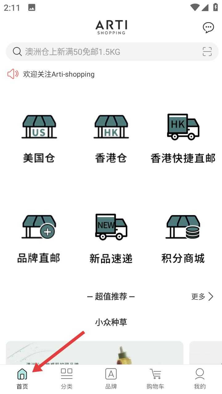 首页设计直观高效,美国仓快捷直邮、品牌新品速递、积分商城及超值小众种草专区一目了然,为用户提供多元化的购物入口,快速发现心仪好物。