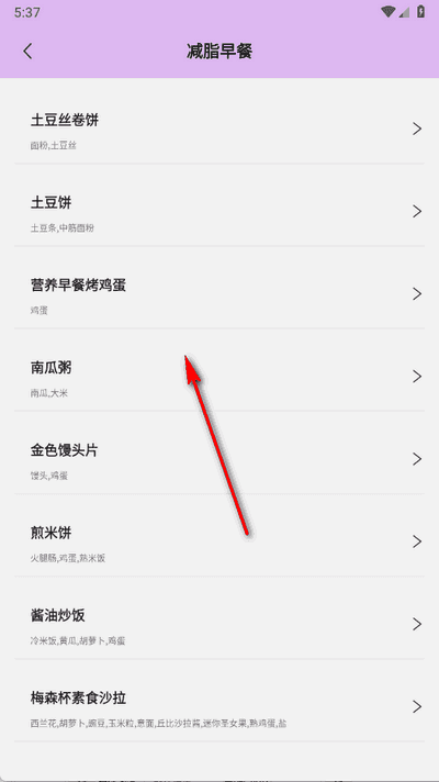 在食谱页面中,选择减脂餐”分类,即可浏览系统为你精心搭配的低热量、高营养餐单。