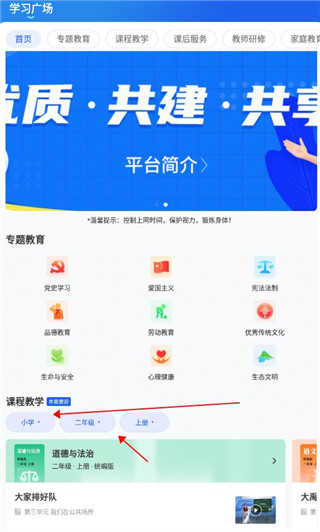 5. 按需选择对应年级、学期(上/下),精准定位学习阶段。