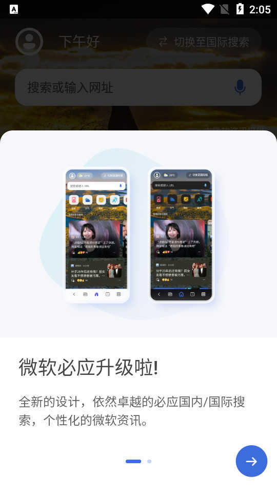 Bing微软必应国际版是微软官方推出的全球版搜索引擎App,集高效搜索、AI智能对话、精美壁纸、隐私保护与实用工具于一体。不仅支持文字、语音、图片及二维码等多种搜索方式,还内置Microsoft Rewards积分体系、多语言翻译、单位换算、疫情追踪等丰富功能,更可体验基于新一代AI大模型的新必应”聊天模式(需配合网络环境设置),为全球用户提供更智能、更纯净、更个性化的搜索体验。
