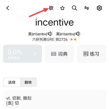 随后点击顶部醒目的砍”字,即可将该词移出当前复习队列,聚焦未掌握内容。