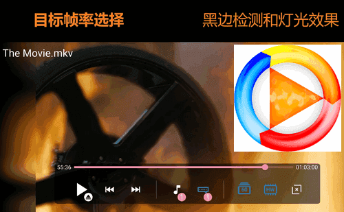 SVPlayer 能自动扫描设备中的视频文件,快速建立媒体库,一键播放无需繁琐操作。用户还可根据视频类型和使用场景,自由调整播放参数,包括帧率目标(如 48fps、60fps、120fps)、黑边检测、背景灯效果等,打造专属观影环境。
