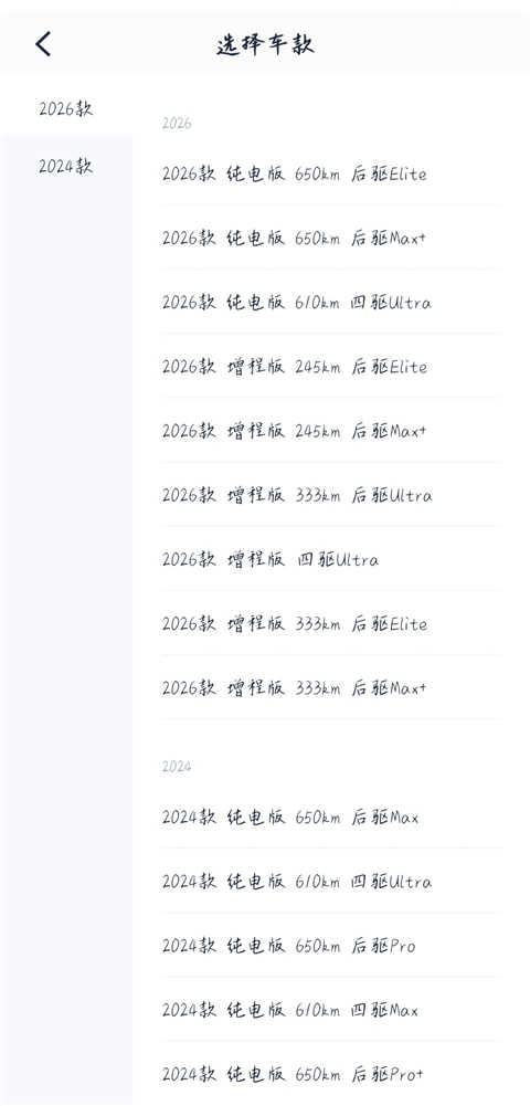 依次选择您的车辆品牌与具体车型。