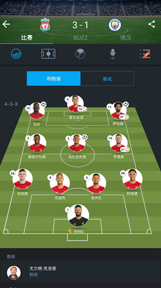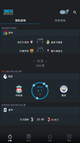 即时比分、突发新闻、社交热点聚合、视频、电视节目表、即将到来的赛程、首发阵容、高级统计数据和转会更新。