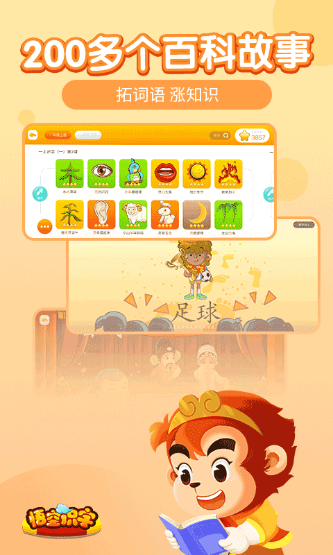 悟空识字游戏是一款专为3-8岁儿童量身打造的趣味识字教育APP。以经典名著《西游记》为故事蓝本,巧妙融合15大精彩场景、120多个互动识字游戏与1200个生动动画,让孩子在花果山、大闹天宫、三打白骨精等耳熟能详的情境中轻松识字。应用涵盖1500个常用汉字及5000余个高频词语,覆盖日常书面语的90%以上,配合阶梯式阅读体系、多样化学习模式与趣味复习机制,真正实现每天十分钟,轻松上小学”的启蒙目标。