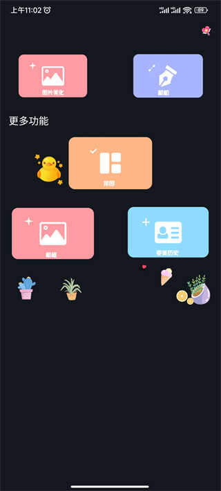 1、启动ProMovie应用,在主界面选择【图片美化】功能(其他选项包括相机、拼图、相框等)。