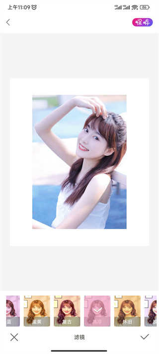 4、应用智能滤镜,增强肤色与背景融合度,使成片更自然协调。