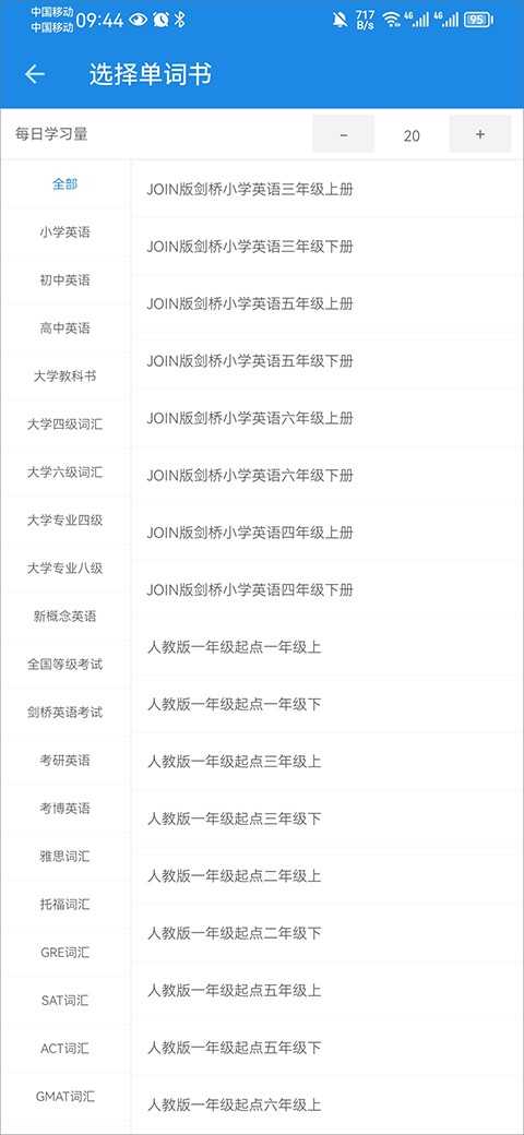 进入单词学习模块,你可以自由添加适合自身水平的单词书,涵盖小学、初中、高中、四六级、考研、GRE、托福、雅思等全阶段内容。