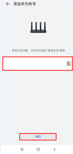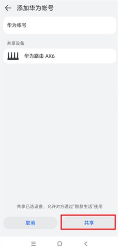 3. 以账号共享为例:输入对方华为账号,点击确定” > 共享”。