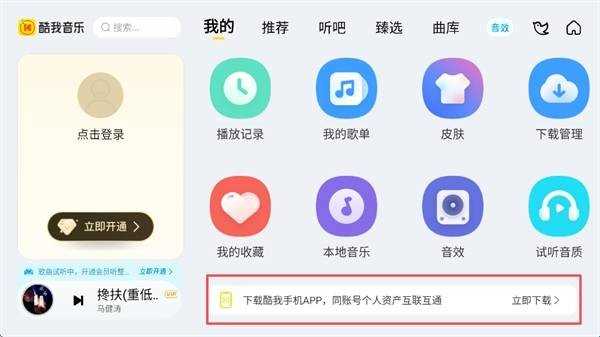 3、酷我音乐车机版与手机App账号互通,个人歌单、收藏等资产同步共享。