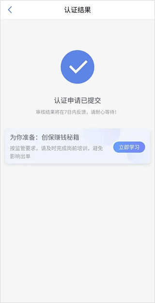 6、认证申请提交后,系统审核。7个工作日内反馈。