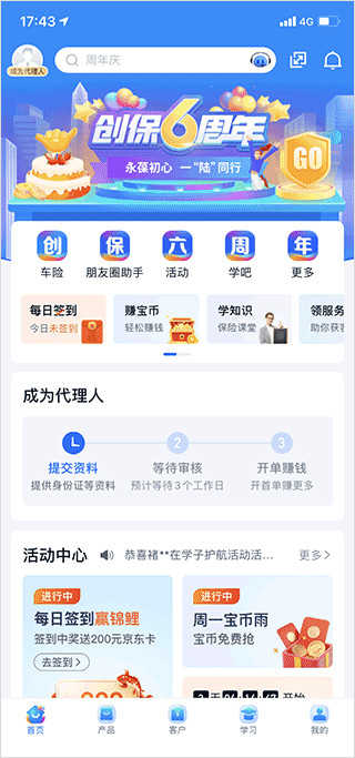 创保网app是由平安创展保险销售服务有限公司推出的一款手机保险软件,依托于平安综合金融优势,为用户提供全面丰富的保险产品和细致体贴的展业专家支持。专注为您实现财富梦想,快捷在线投保,立即获得佣金,提取现金实时到账。并且,软件借助移动互联网技术,打破了传统展业的时间空间限制,能够为用户提供在线投保、客户管理、实时结算等线上展业流程,让用户随时为客户服务,实现自身资源变现。而且可以实现快捷在线投保,立即获得佣金,提取现金实时到帐,并可推广您的门店让客户自助投保,客户维护及时跟踪,能力培养让您更快成长。不仅如此,平安创保网app可随时管理您的客户信息,客户通讯录随时查看更便捷,更有超多产品信息详解帮您快捷投保,赚取更多收益,让你的保险工作更有效率,感兴趣的用户快来下载体验吧。