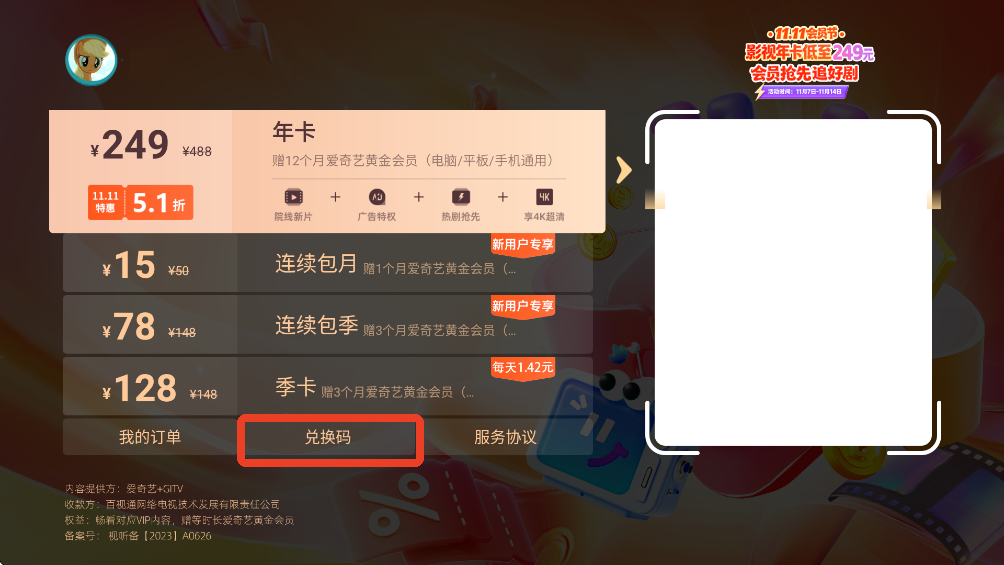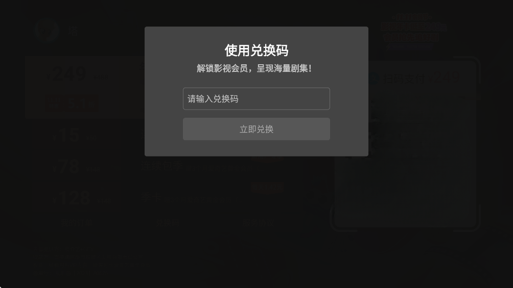 2、在充值下方有个【兑换码】,点击后输入兑换码即可。
