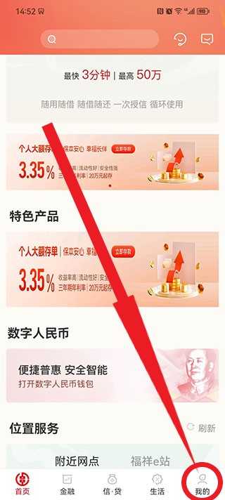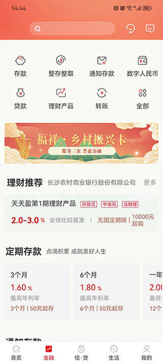 用户点击屏幕下方的金融按钮就可以进行进入金融服务页面,可以进行存款、理财等业务。