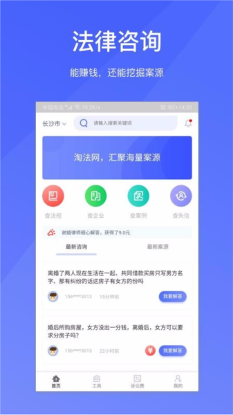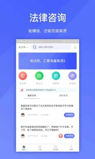 【法律咨询】用户可发布免费或付费咨询,律师及时响应即可获得报酬,同时将咨询转化为案源机会,实现答问即拓客”。