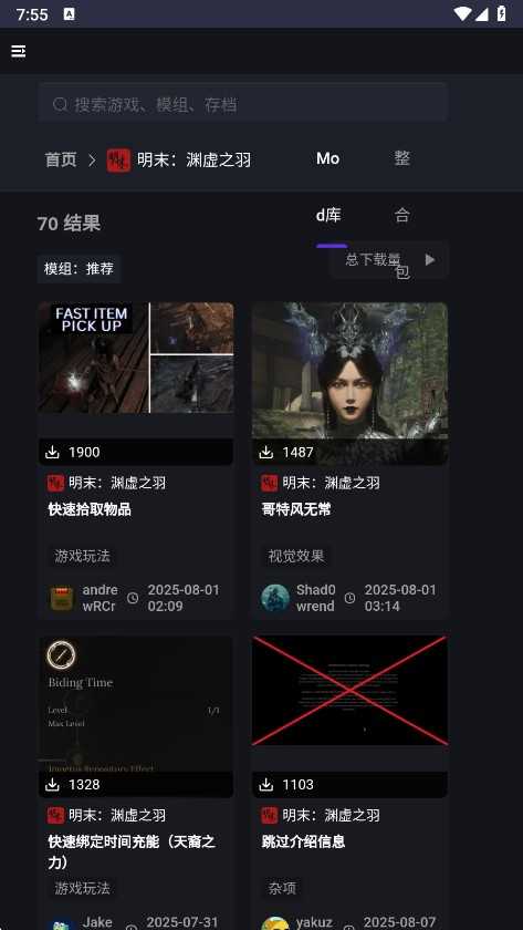 2、点击你感兴趣的游戏,系统会为你推荐热门或实用的模组资源。
