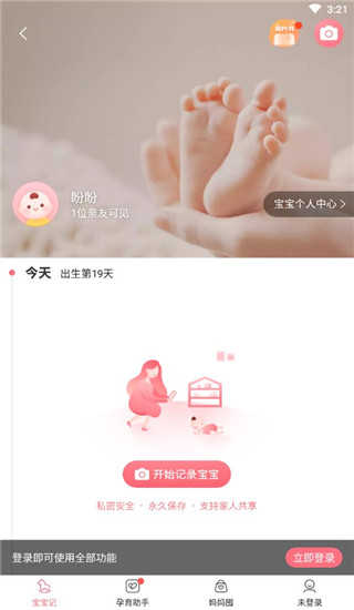 支持小视频、照片、文字,记录宝宝的成长点滴;可以设置家人共享,牵挂的亲友,可以同时看到宝宝的记录;仅限邀请的亲友可见,严格保护宝宝的隐私。