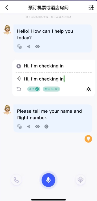 每次对话内容均由AI动态生成,确保练习不重复、更贴近现实。无论是扮演酒店客人与前台”沟通,还是参与设定好的挑战任务,都能在趣味中提升实战能力。