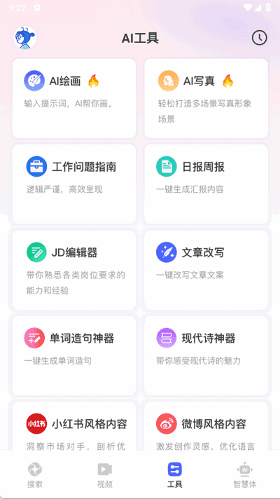 进入AI工具”专区,可使用小说创作、文章改写、JD简历编辑器等多样化文本工具,大幅提升写作与办公效率。
