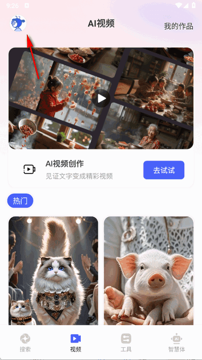 在AI视频”页面,只需描述你想要的视频场景和风格,系统将自动生成高质量短视频,适用于宣传、教学或社交内容创作。