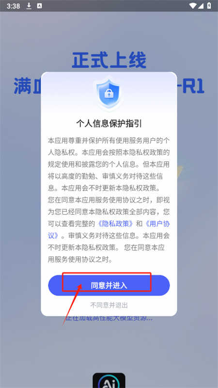 首先在本站下载并安装AI智能搜索app,启动后同意隐私政策与用户协议即可进入主界面。