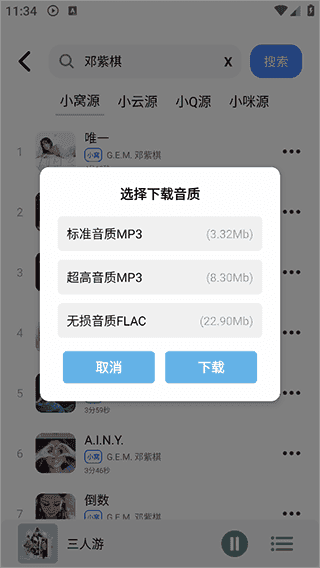 3、选择下载”选项后,系统将提供多种音质等级(包括无损格式),用户可按需选择并开始下载。