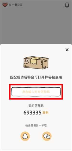 下载安装Suki情侣互动后,登录账号即可进入主界面。点击底部去匹配”按钮,输入对方提供的匹配码,即可成功绑定情侣关系。你也可以将自己的匹配码通过、QQ等社交平台发送给另一半,轻松完成配对,开启专属二人世界。