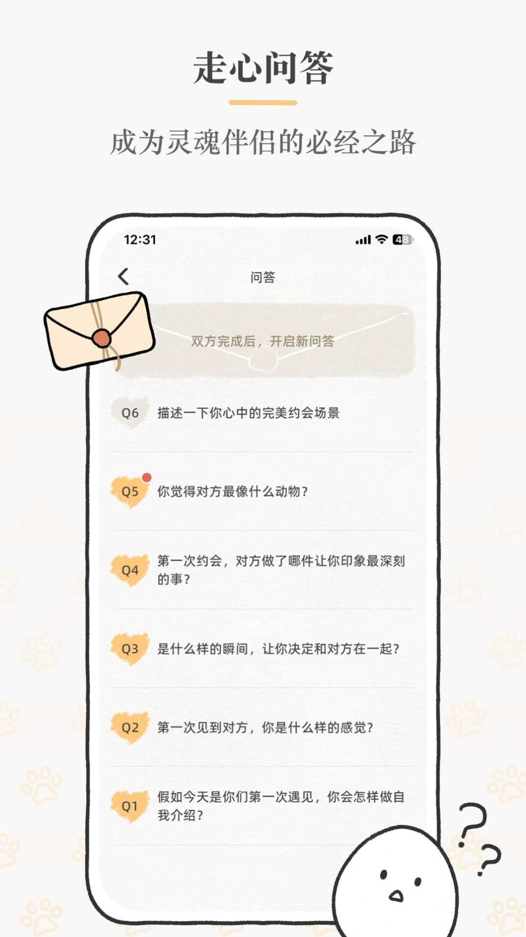 Suki每日推送一道走心恋爱问答,只有双方都作答后才能查看对方的答案。这些问题既有趣又深入,帮助你们发现彼此未曾言说的想法,在坦诚交流中拉近距离。