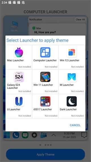 首次使用时,点击Preview”预览当前效果;随后进入应用主题功能,从丰富主题库中挑选心仪风格。若所需主题尚未安装,系统将自动提示下载;安装完成后,再次点击即可立即应用全新主题,瞬间改变桌面氛围。