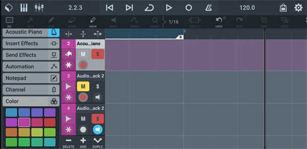 5、返回主界面进入音轨编辑区,即可对音频或MIDI内容进行剪辑、混音、添加效果等深度操作。
