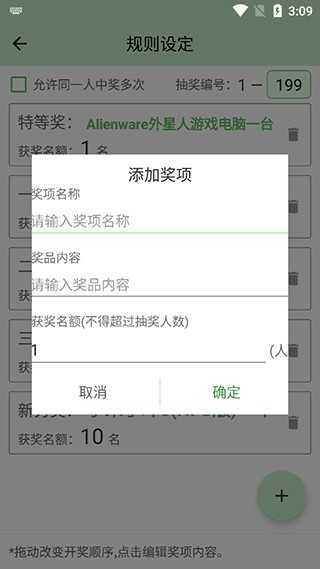 2、在规则设定页可查看现有奖项,点击右下角的【+】按钮,就能打开添加奖项的弹窗,补充新奖项啦。