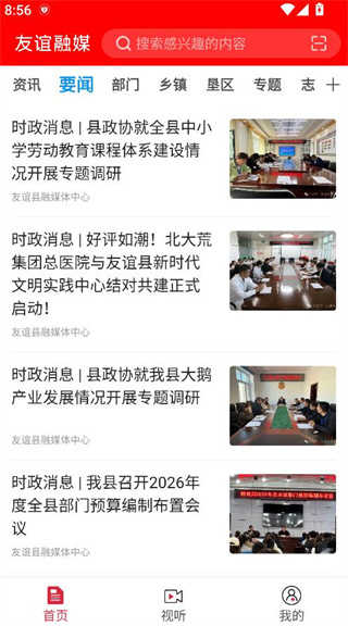 友谊融媒app是一个非常好用的本地生活融媒体资讯软件,结合了新闻、政务和服务,让你在线阅读各种新闻资讯,了解资讯的情况,让你的资讯阅读更方便;让你的资讯管理更便捷,对新闻有全面的了解,并即将资讯进行分类,选择更方便,阅读的资讯更真实。还将个人的信息进行详细的记录,知道历史观看的资讯信息,让账号的管理变得更专业。