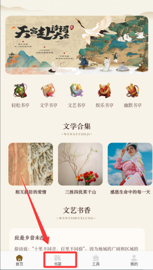 1、在软件首页底部,点击【工具】进入工具功能页面。