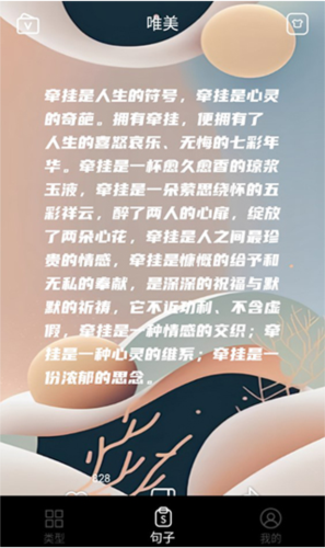 予言被众多用户称为手机里的暖心朋友”。它不只是一个句子集合,更是一个能读懂你情绪、回应你需求的情感伙伴。凭借精准的分类、个性化的设置与流畅的交互体验,予言让每一次打开都充满期待,让每一句阅读都值得回味。