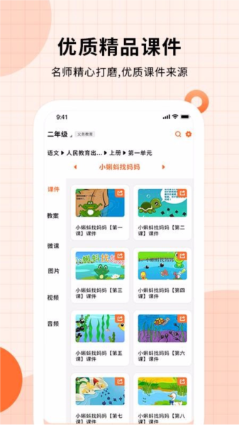 课件PPT手机版在用户体验上做了深度优化。支持分类浏览与关键词搜索双路径查找资源,精准定位所需内容;提供手机端直接播放PPT功能,可自由调节页码、全屏演示,适合课堂或会议现场使用;内置自定义筛选器,教师可按教材版本、课文标题快速锁定课件;还支持一键分享至、QQ等平台,方便协作与交流。此外,视频、音频类课件可在线试听预览,确保内容质量。