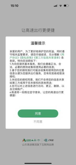 1、可以直接下载最新版本的e高速,进入的时候需要先同意隐私权限。