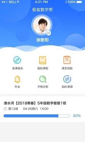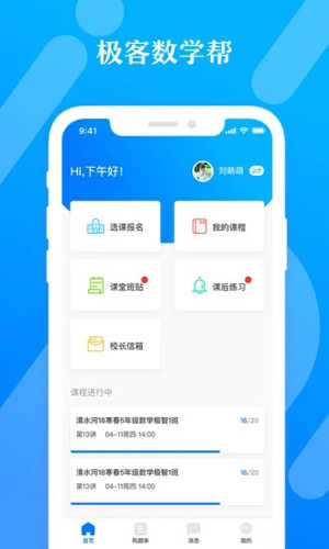 1.在线报名:想要续报极客数学帮课程,却因为工作繁忙无法抽身前往校区报名,极客数学帮APP强大的在线功能,让家长无需出门一步,便能一键搞定课程查询、报名选座及线上缴费,随时随地为孩子选择更适合的老师与班级。