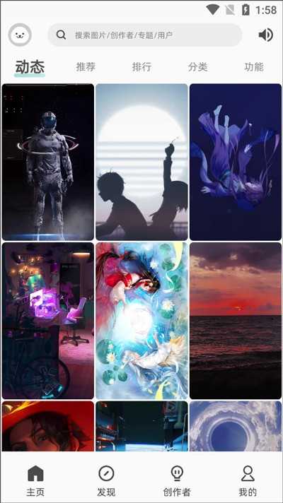 打开并登录图凌壁纸引擎App后,进入主界面即可开始探索海量壁纸库。你可以通过分类导航快速浏览不同风格内容,或直接使用搜索功能精准定位心仪图片。