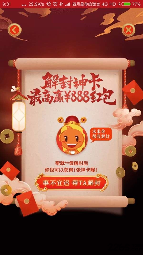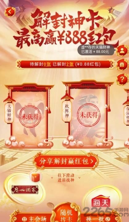 1.登录淘宝账号,随便逛一逛店铺就可以获得解封神卡,分享给好友就可以获得不同面额的红包!