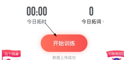 2.进入背单词界面后,点击如图中所示位置的【开始训练】功能。