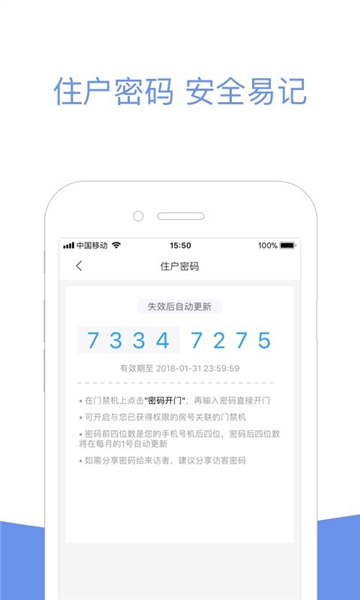 远程开门:随时随地开门,不受距离限制开门记录:所有开门记录追根溯源,保障通行安全可靠密码开门:手机没电无网络,依旧畅通无阻