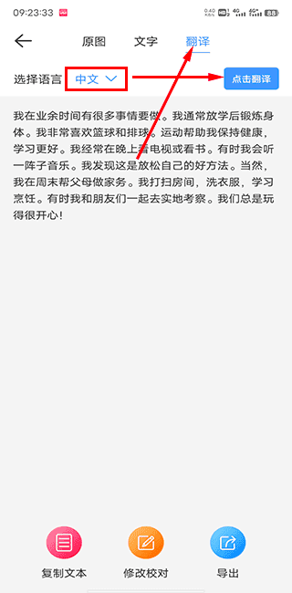 6、如果你还需要翻译的话,可以选择【翻译】功能,然后选择需要翻译的语言,【点击翻译】就可以啦